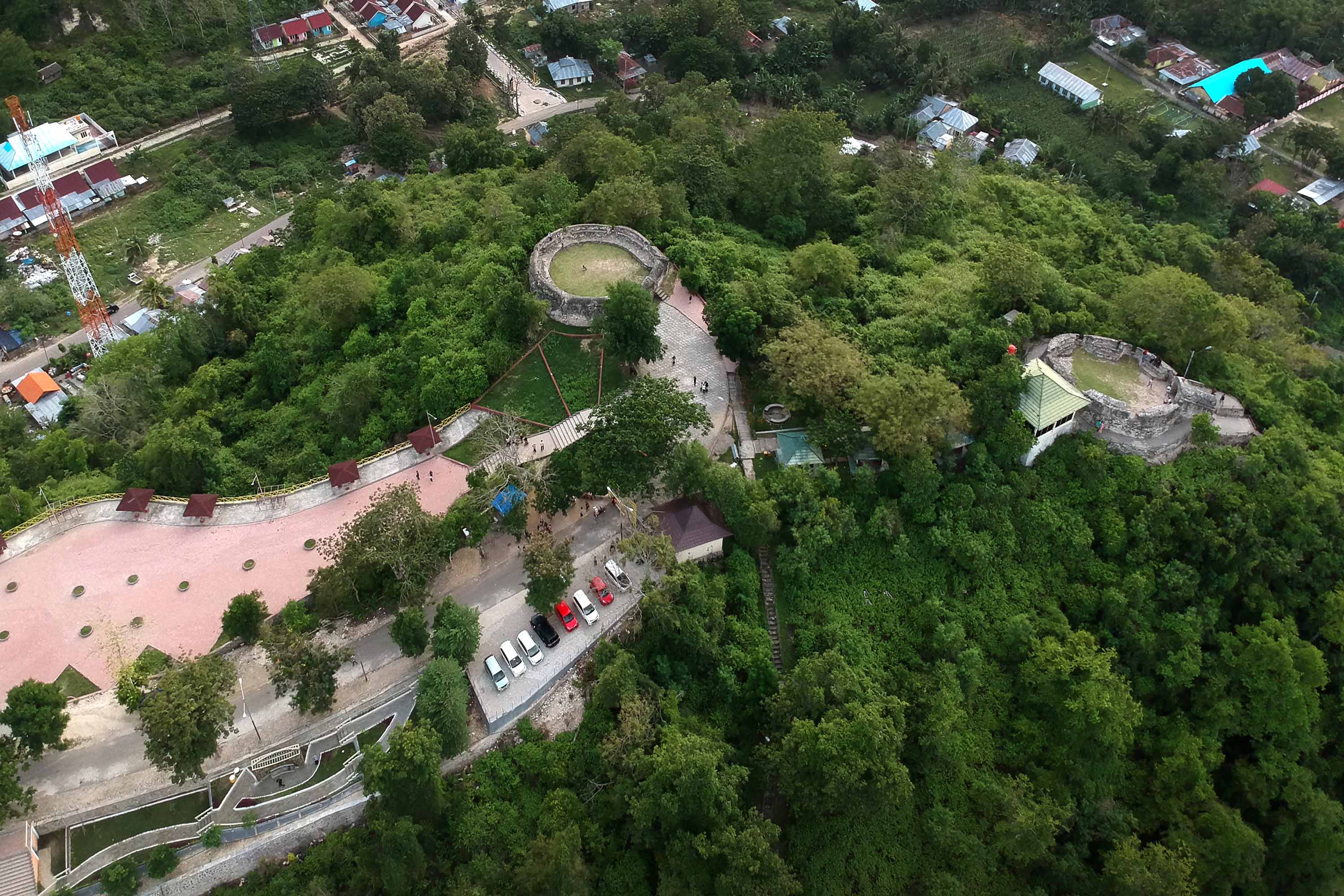 Dari puncak benteng, pengunjung akan disuguhkan panorama luar biasa Danau Limboto yang terbentang luas, berpadu harmonis dengan hamparan perbukitan hijau. Pemandangan ini menghadirkan suasana tenang sekaligus memukau, menjadikannya lokasi ideal untuk berfoto maupun sekadar menikmati keindahan alam Gorontalo dari ketinggian.