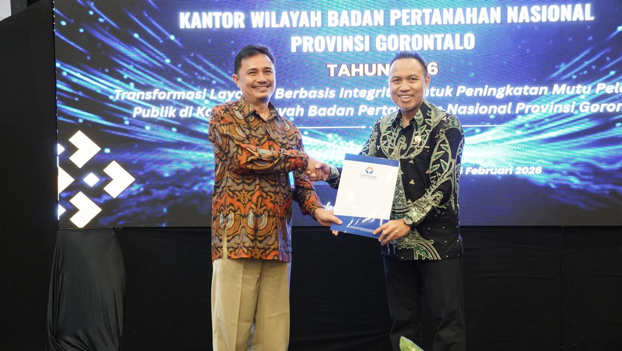 Coolturnesia – Kota Gorontalo – Ombudsman RI Perwakilan Provinsi Gorontalo melakukan penyerahan hasil penilaian maladministrasi penyelenggaraan pelayanan public kepada Kepala Kanwil ATR/BPN Provinsi Gorontalo di Hotel Grand Q Gorontalo, Rabu.